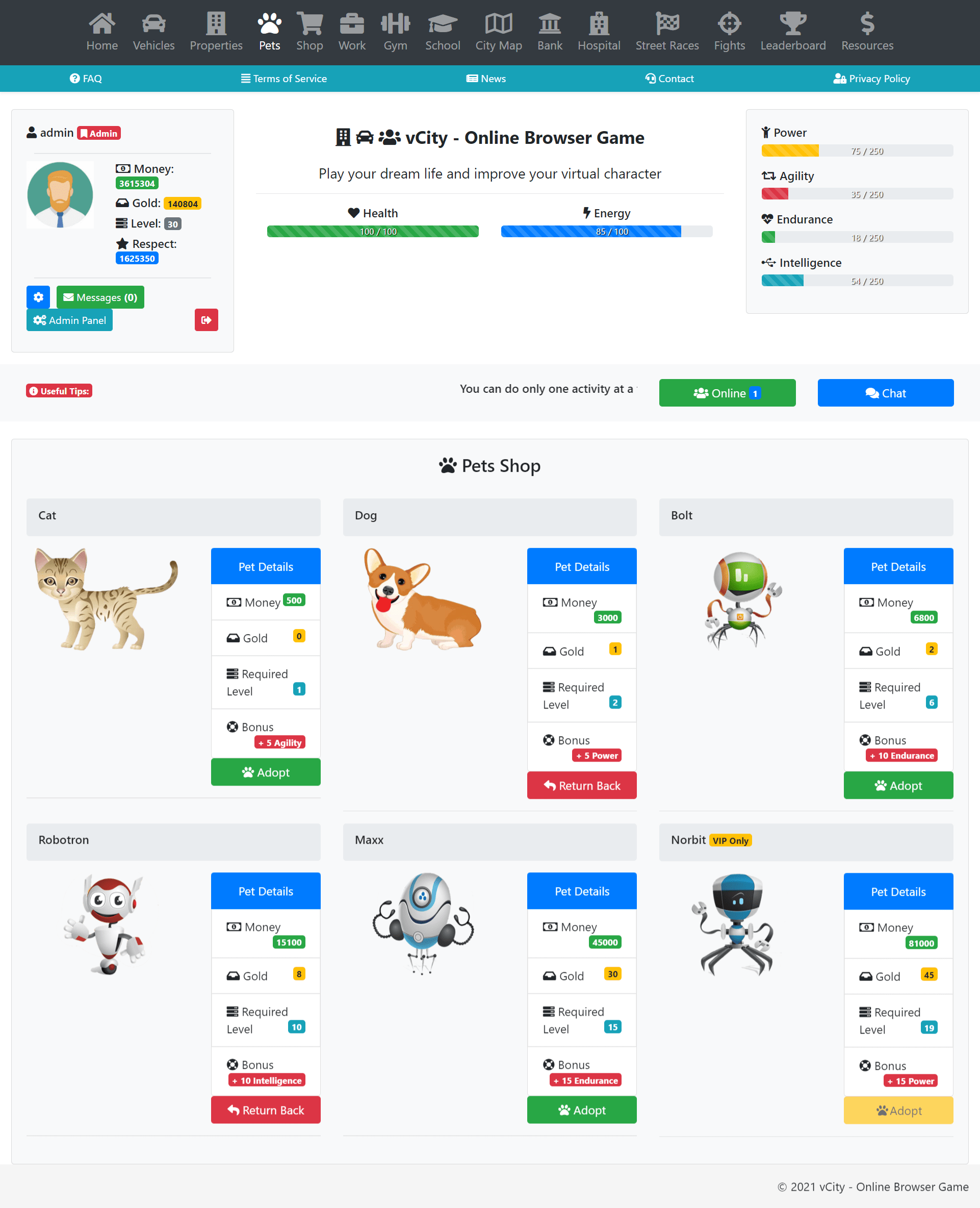 vCity - Online Browser Game